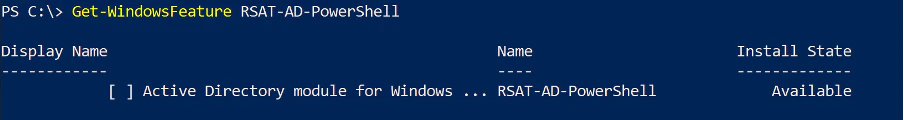 Check the status of the RSAT PowerShell module. On the SharpHound Enterprise server, open a PowerShell as an Administrator and run: