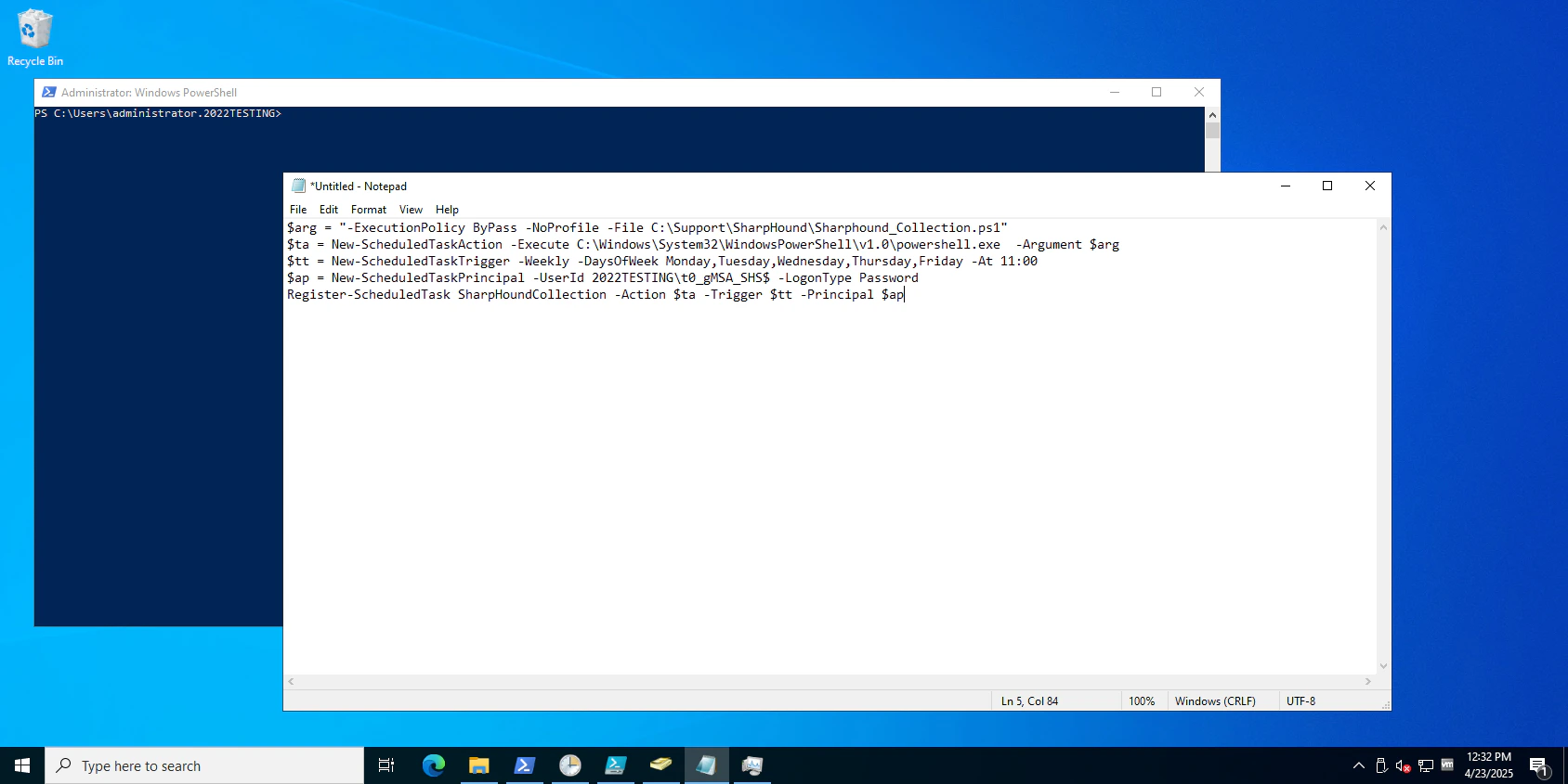 $ at the end of it. Enter the account in this format when adding it to the Domain Admins group.Create a SharpHound PowerShell script to run as a scheduled task