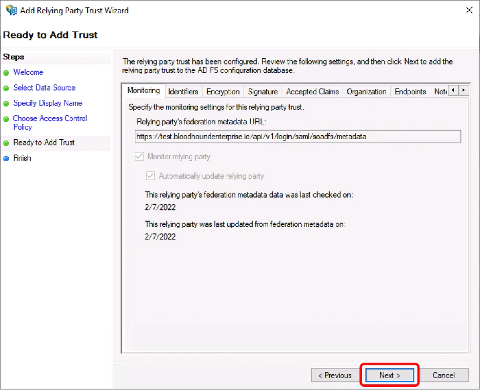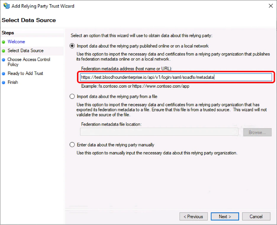 1. Insert the metadata URL based on your chosen name and click “Next.”