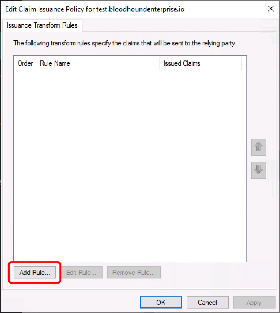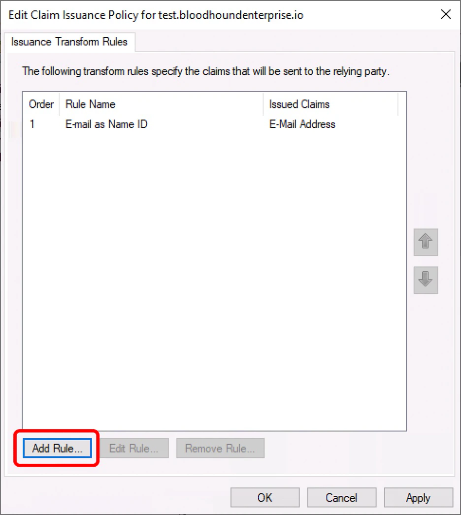 1. On the “Edit Claim Issuance Policy” dialog box, click “Add Rule…”.