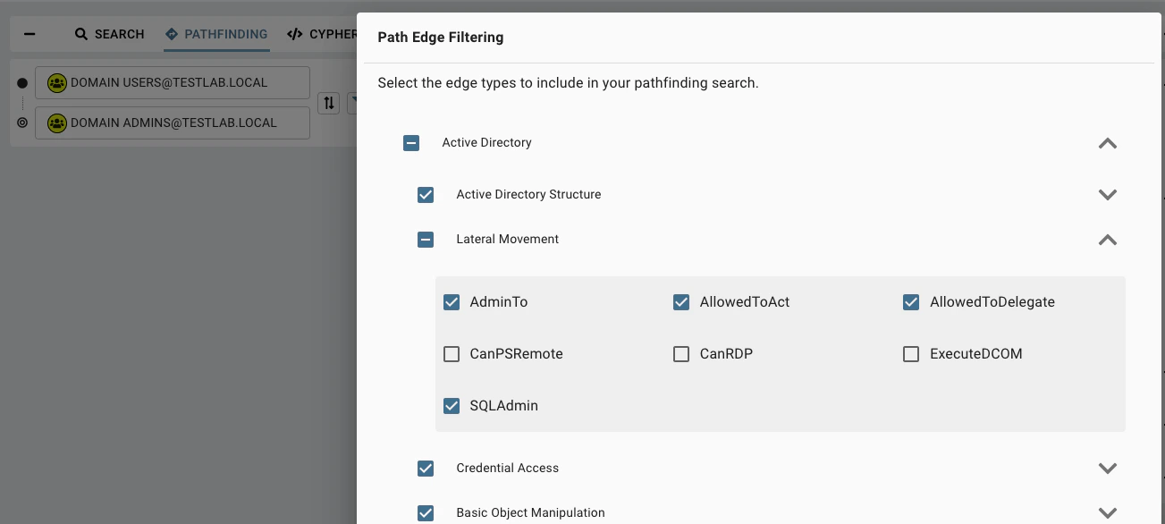 • Pathfinding enhancements - When pathfinding, you can now easily swap start and end objects, plus filter the Attack Path primitives used by the pathfinding algorithm to narrow your query to information of interest.