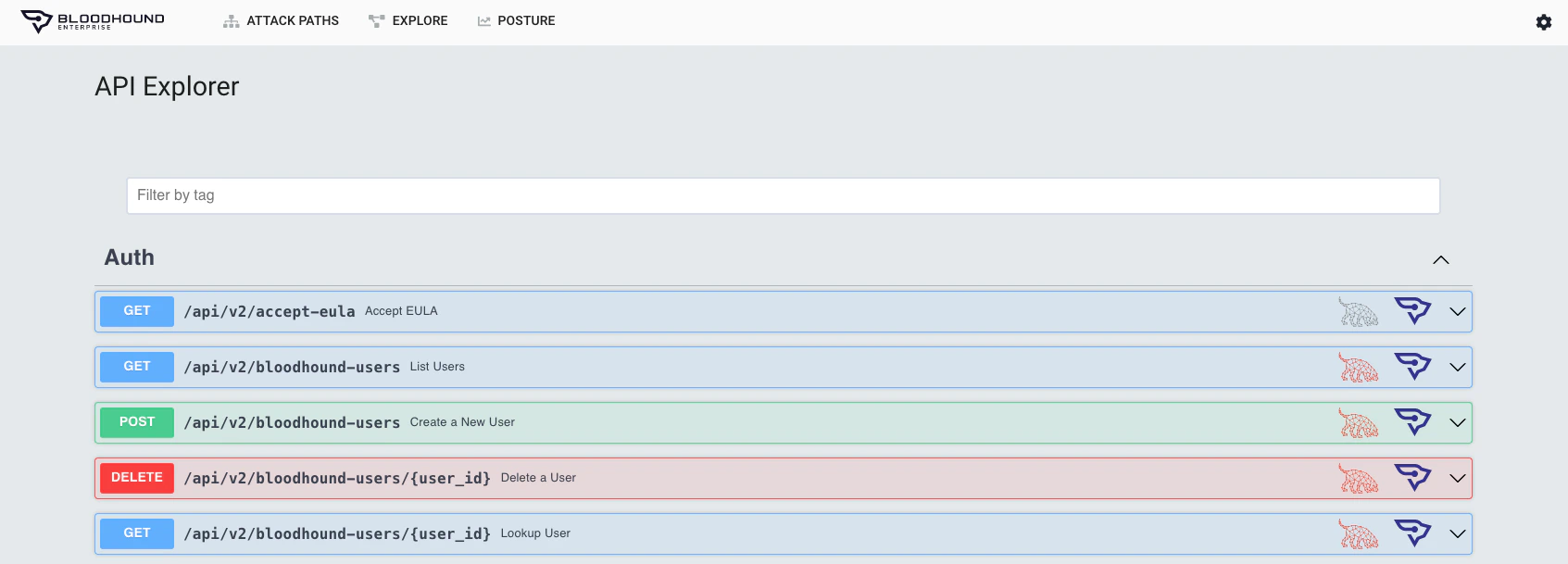 • API Explorer improvements - The API explorer has undergone some updates to indicate which BloodHound products each endpoint applies to. We’ve also fixed the “Try it out” buttons to make it easier to see how data queries and responses will look.